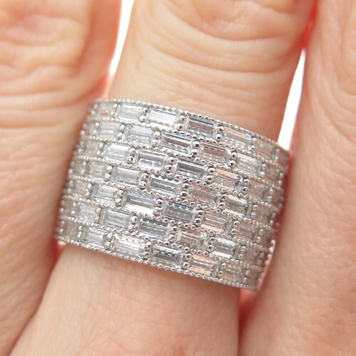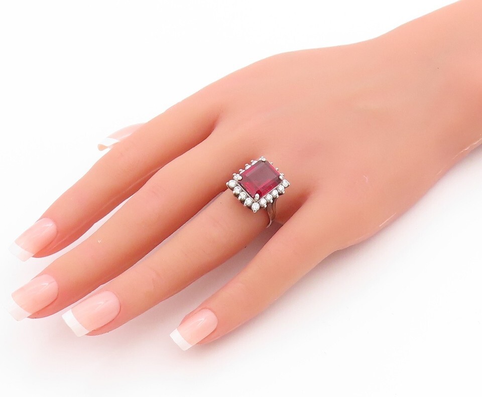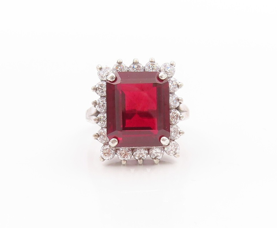 925 Sterling Silver Vintage Ring Dual Color CZ Halo Design Band Sz 6.5 RG33533