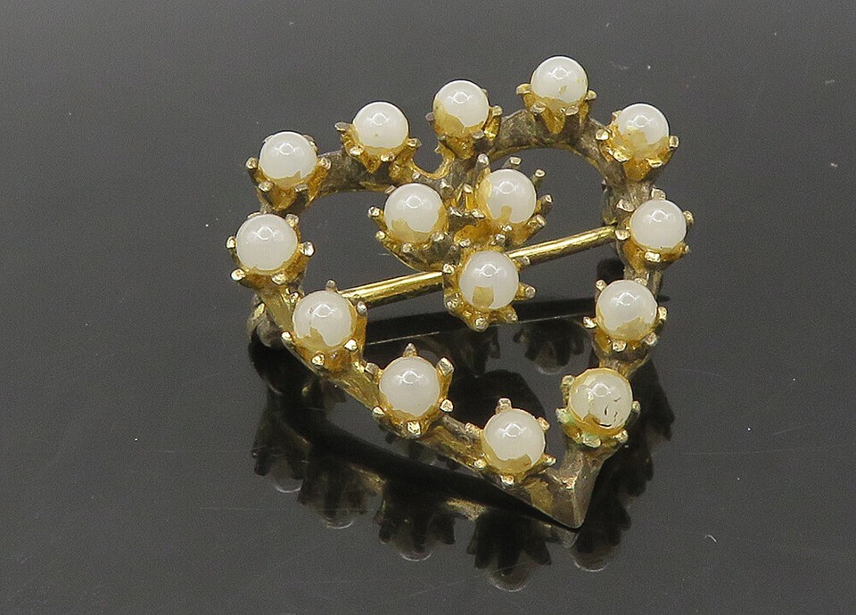925 Sterling Silver Vintage Antique Quartz Love Heart Brooch Pin BP8735