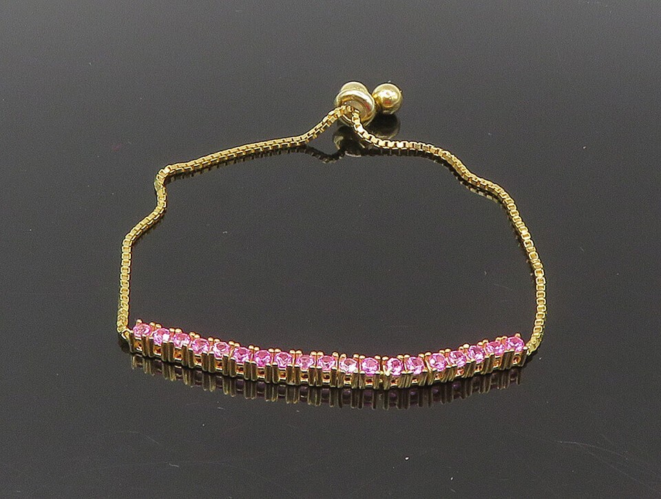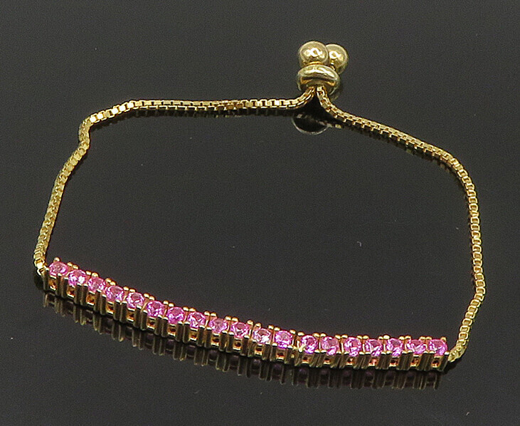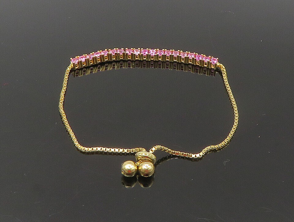 Gold Over 925 Silver Cubic Zirconia Adjustable Child Box Chain Bracelet BT1106