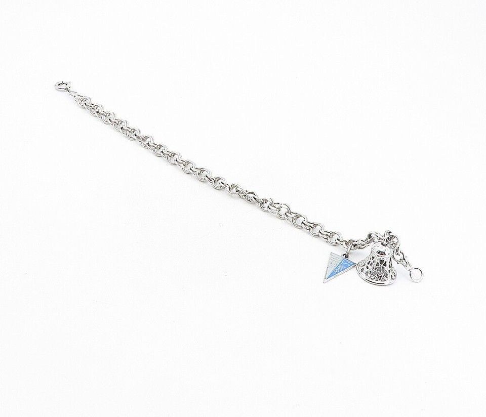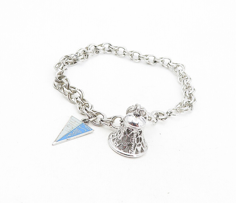 925 Sterling Silver Vintage P.S. Dupont High Charm Chain Bracelet BT3787