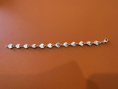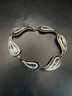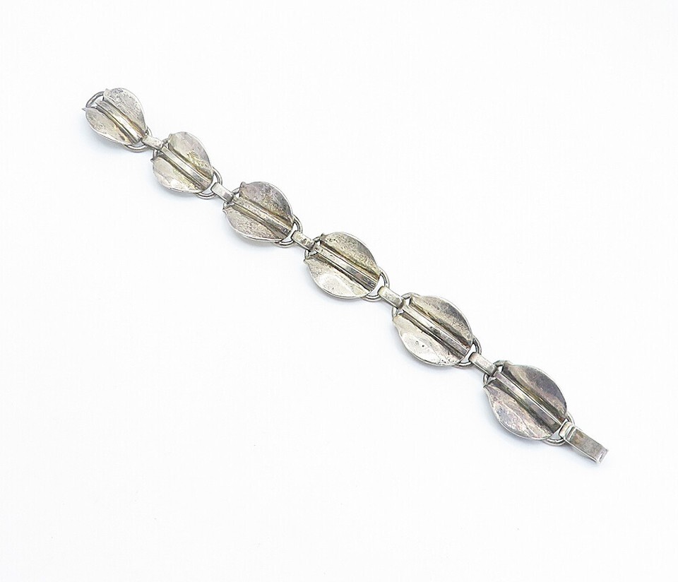 925 Sterling Silver Vintage Modernist Floral Leaf Link Chain Bracelet BT3325