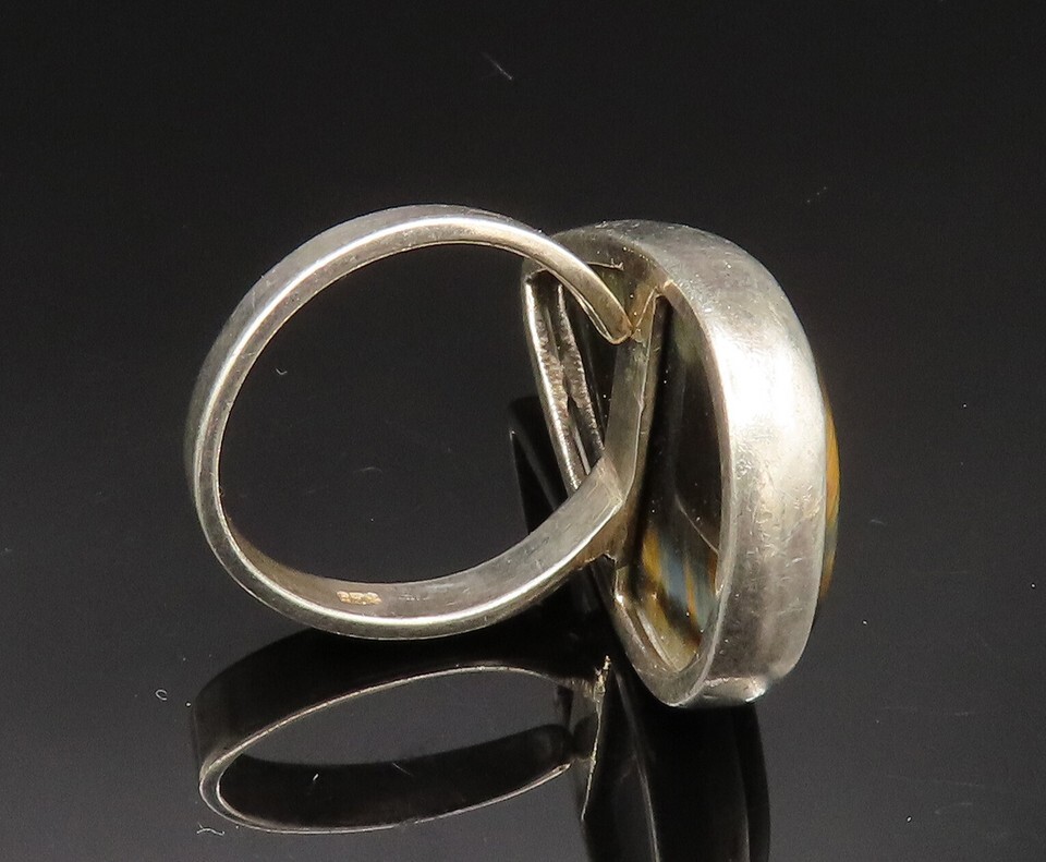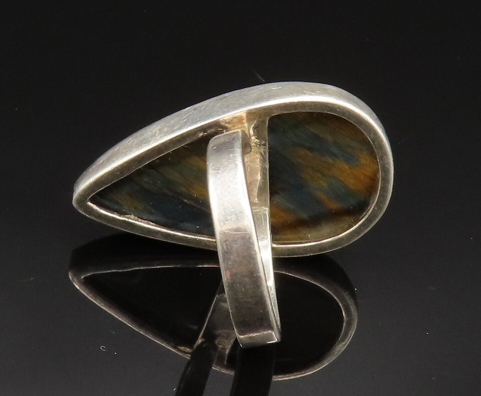 925 Sterling Silver Vintage Pear Shaped Tiger's Eye Ring Sz 8 RG24938