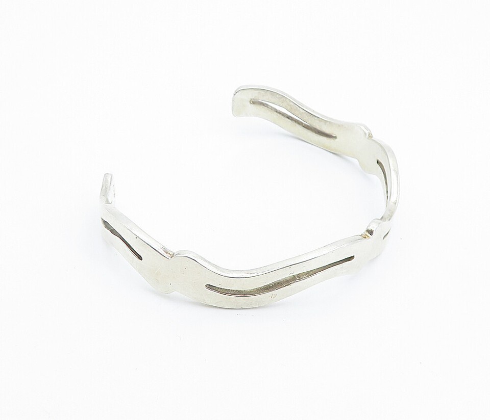 CME 925 Sterling Silver Vintage Shiny Cutout Design Cuff Bracelet BT3359