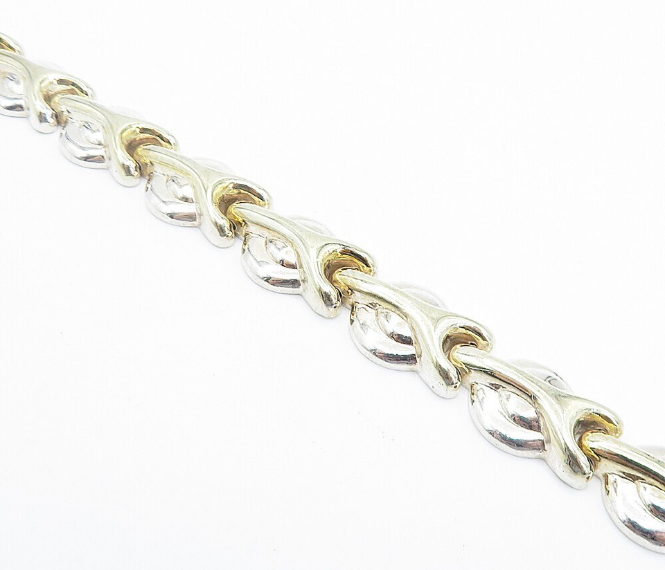 925 Sterling Silver Polished 2 Tone Wrench Hinge Link Chain Bracelet BT3328