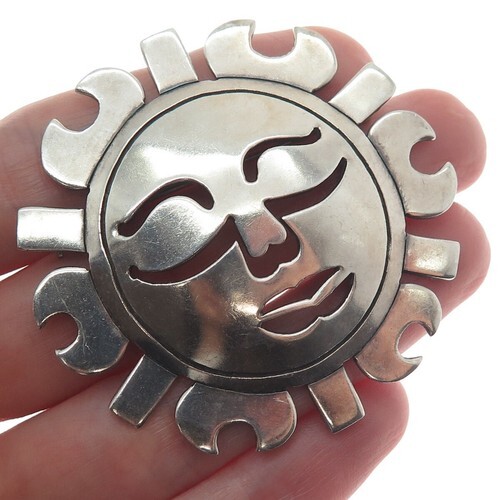 925 Sterling Silver Vintage Antique Dark Tone Sculpted Face Brooch Pin BP5024