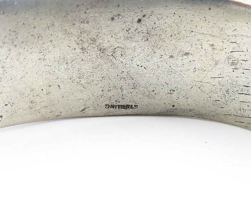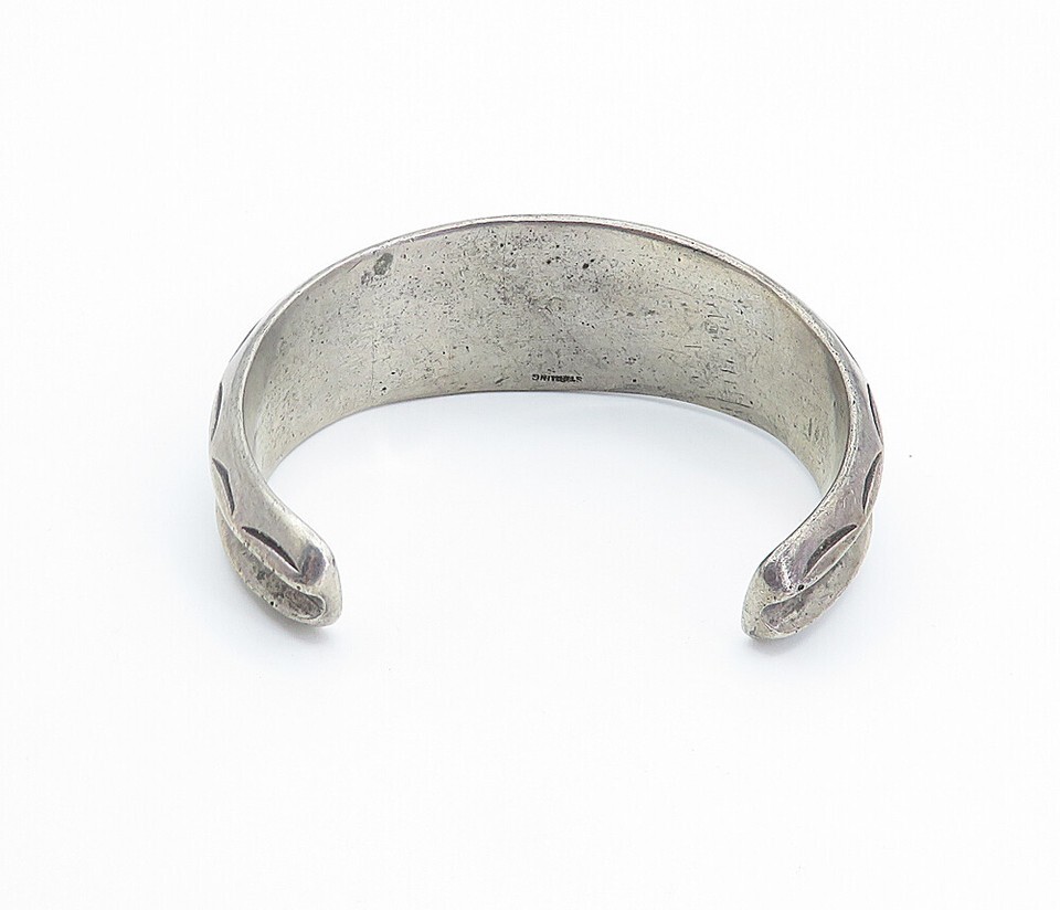 NAVAJO 925 Silver Vintage Fire Opal & Turquoise Etched Cuff Bracelet BT3341