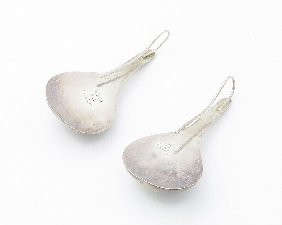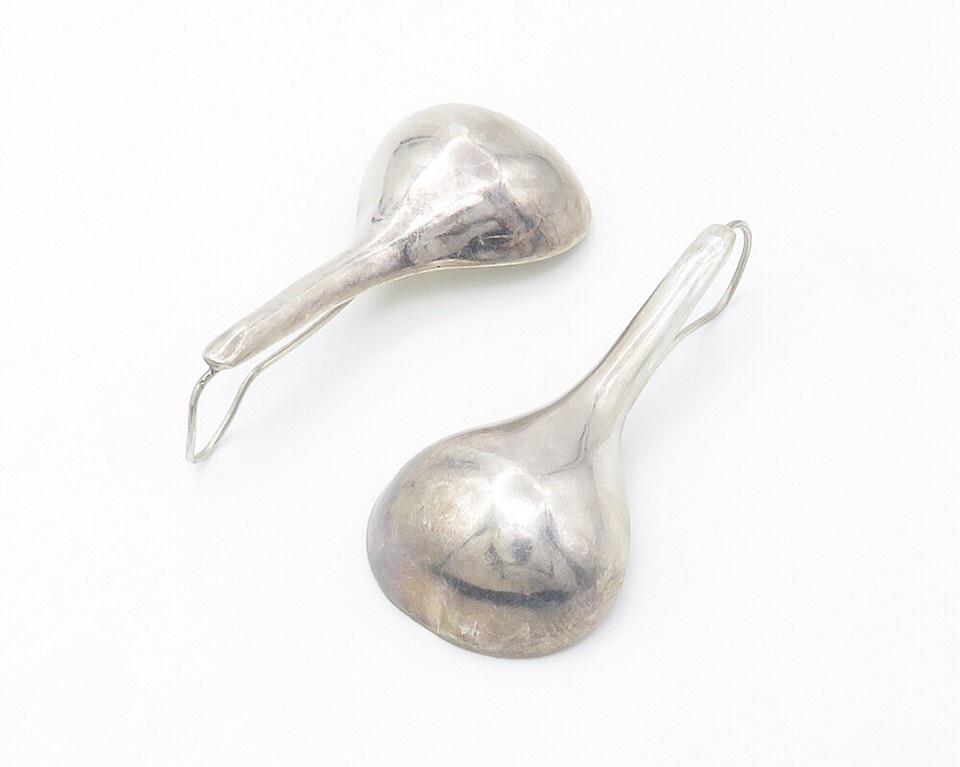 MEXICO 925 Sterling Silver Vintage Smooth Hollow Rain Drop Earrings EG7291
