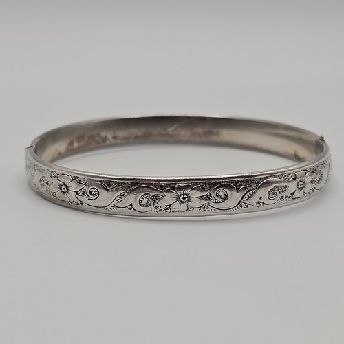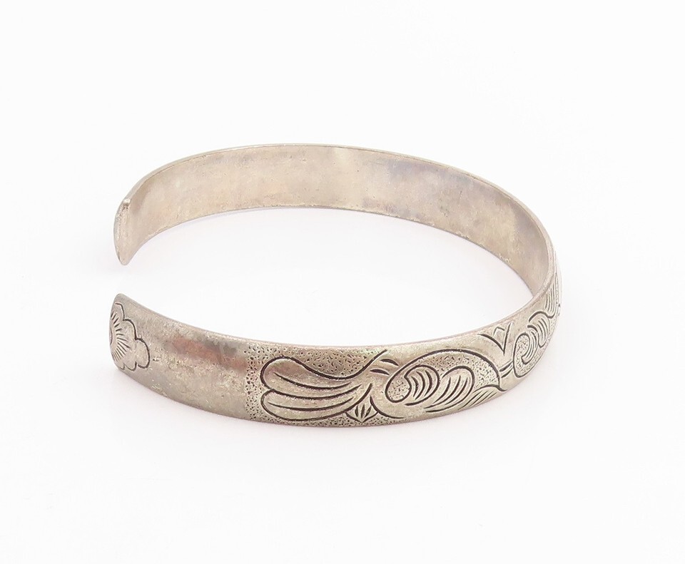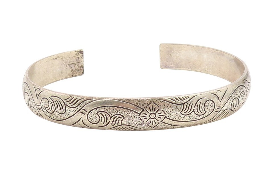 925 Sterling Silver Vintage Bracelet Chinese Export Engraved Floral Cuff BT11505