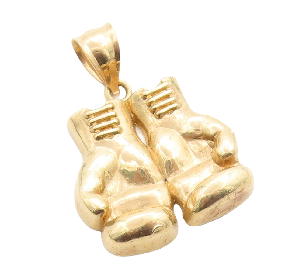 10K GOLD Vintage Carved Pair Of Boxing Gloves Pendant GP566