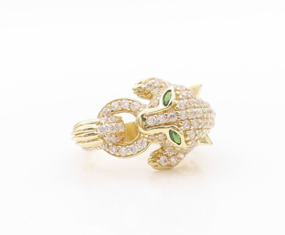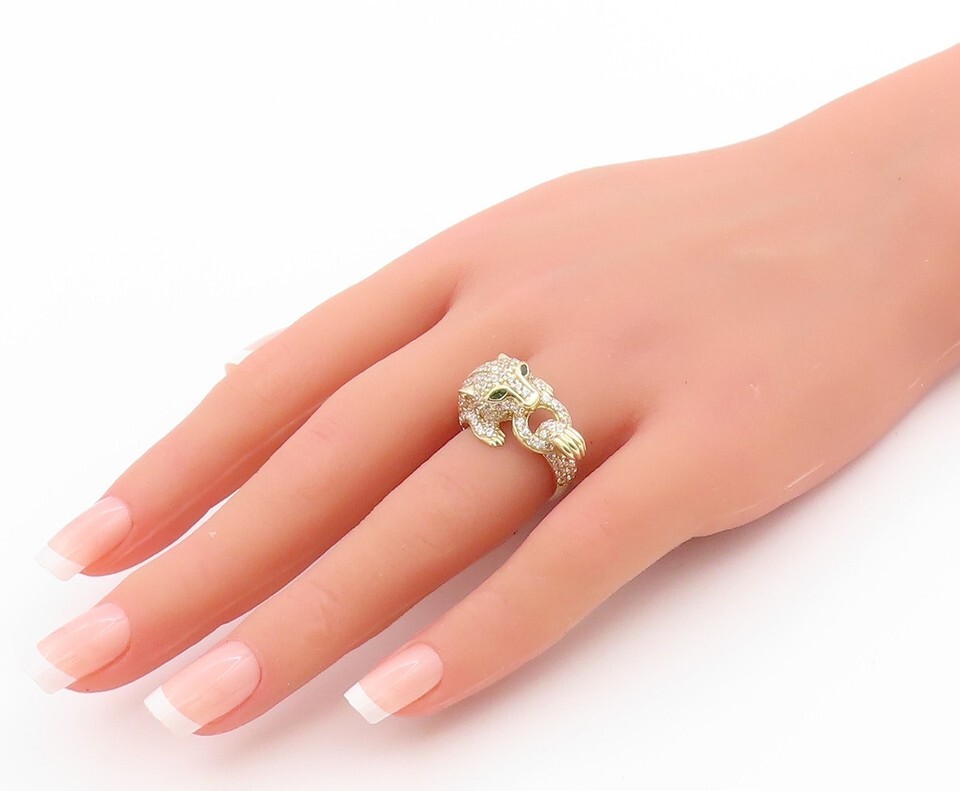 Authenticity Guarantee 10k GOLD Vintage Ring 2 Tone CZ Tiger Holding Ring S...
