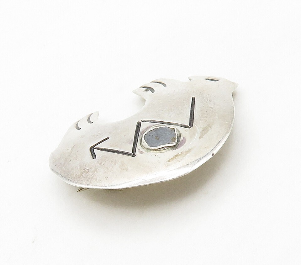 JOE DELGARITO NAVAJO 925 Silver Vintage Arrow Etched Bear Brooch Pin BP6246