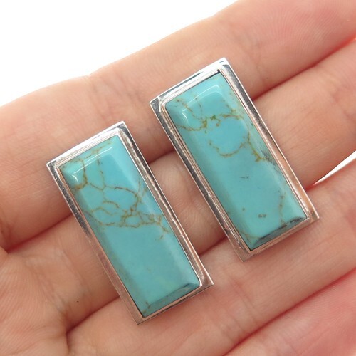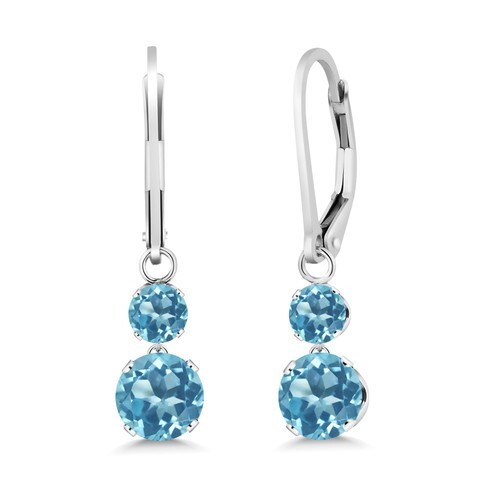 925 Sterling Silver Vintage Blue Topaz Non Pierce Drop Earrings EG7534