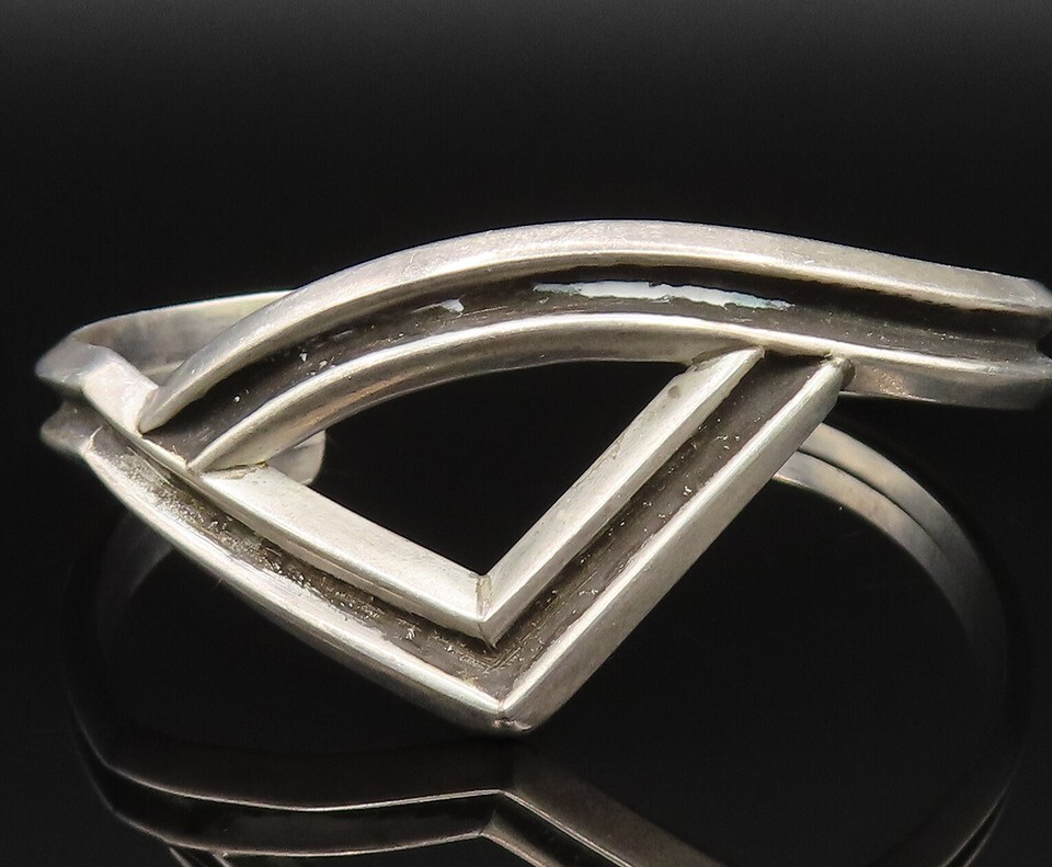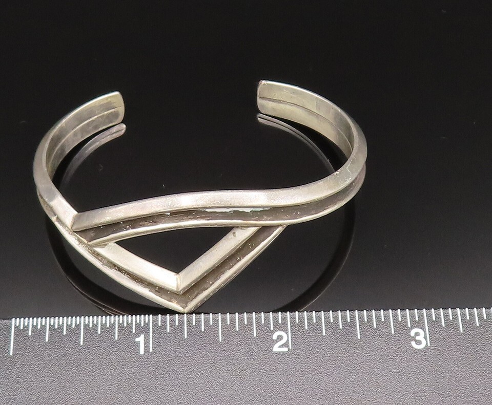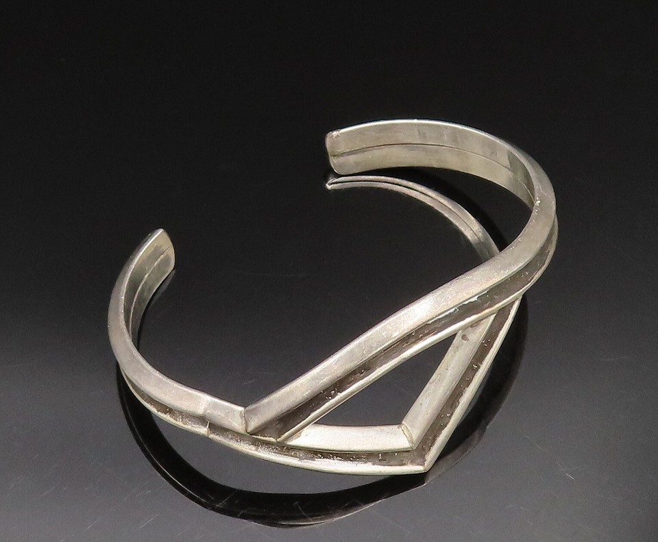 SOUTHWESTERN 925 Silver Vintage Raised Edge Pointed Cuff Bracelet BT9537