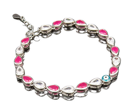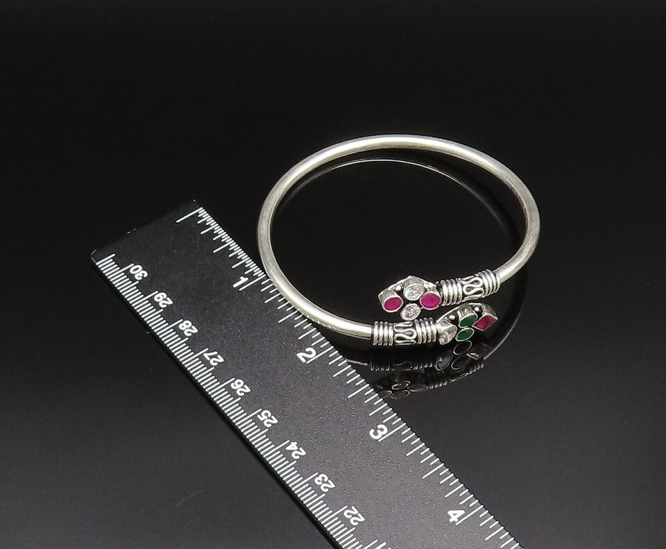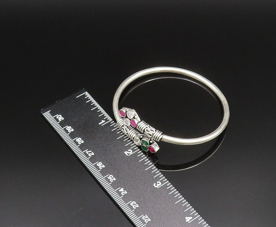 925 Silver Vintage Ruby Emerald & White Topaz Bypass Cuff Bracelet BT9564