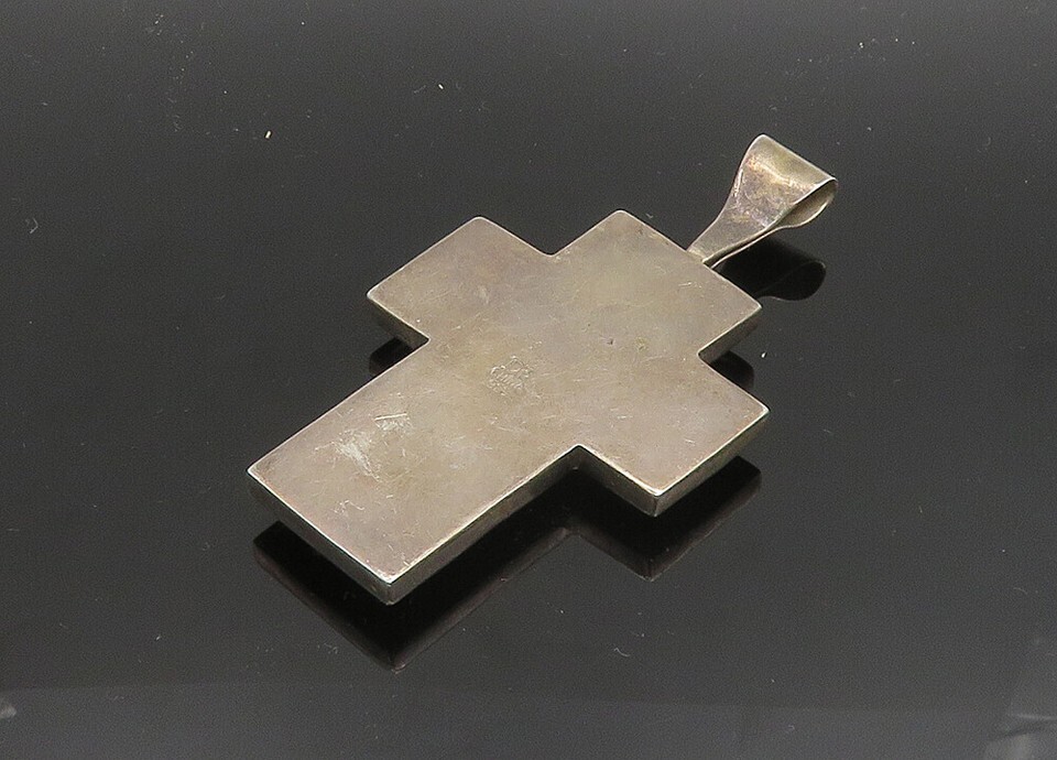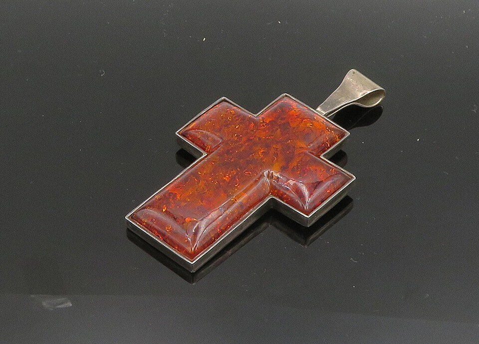 DTR JAY KING 925 Sterling Silver Vintage Amber Religious Cross Pendant PT15876