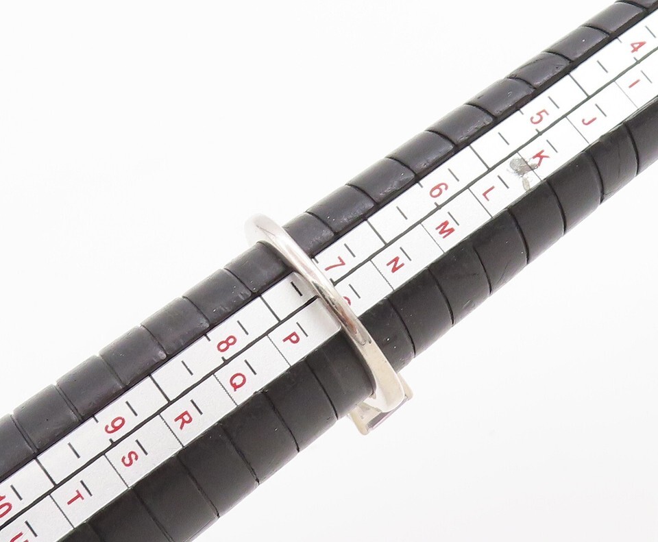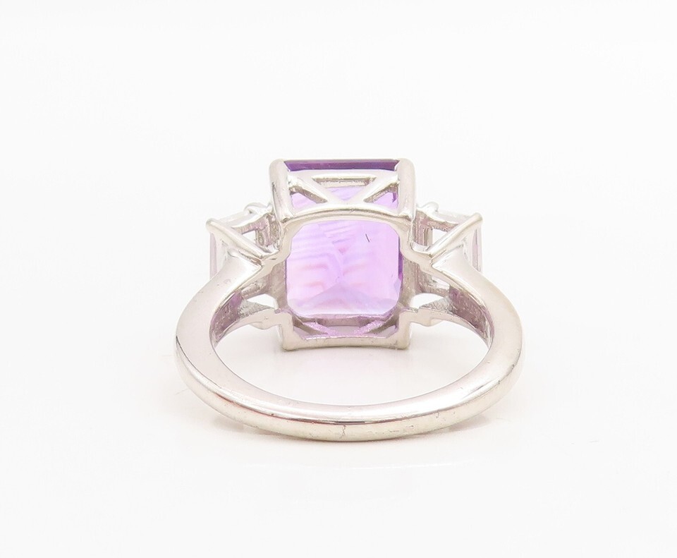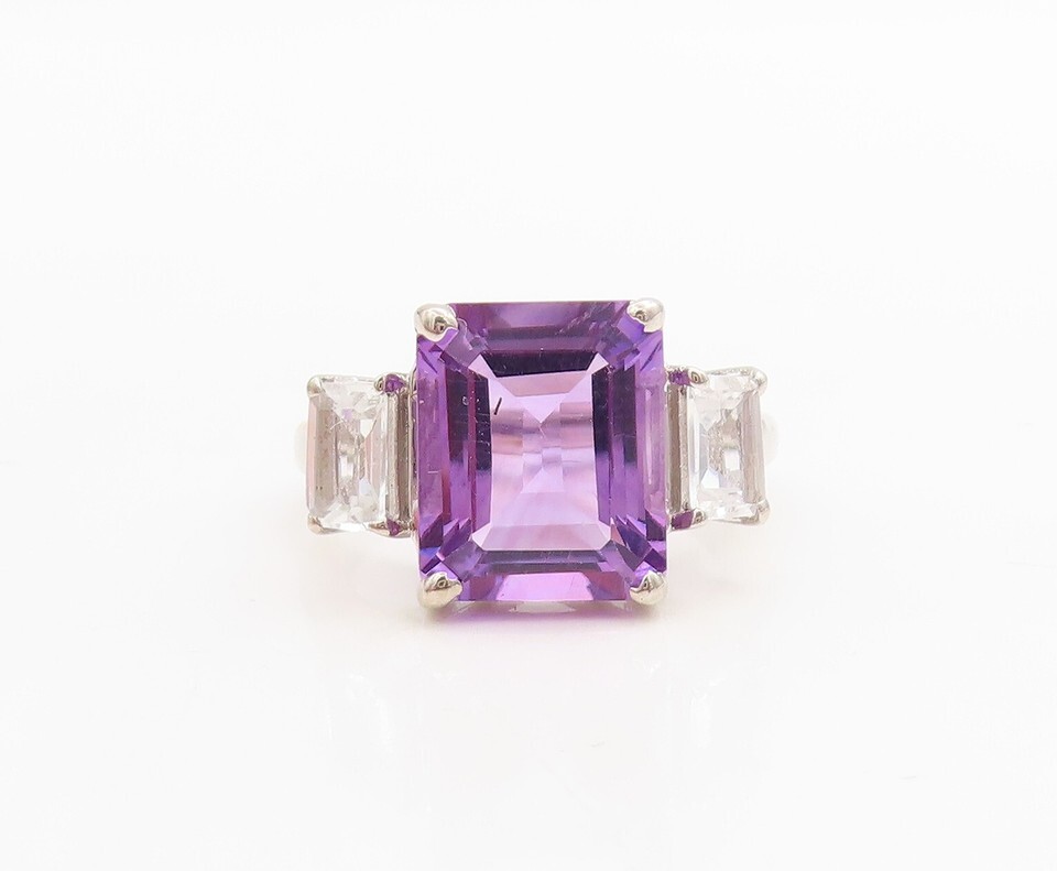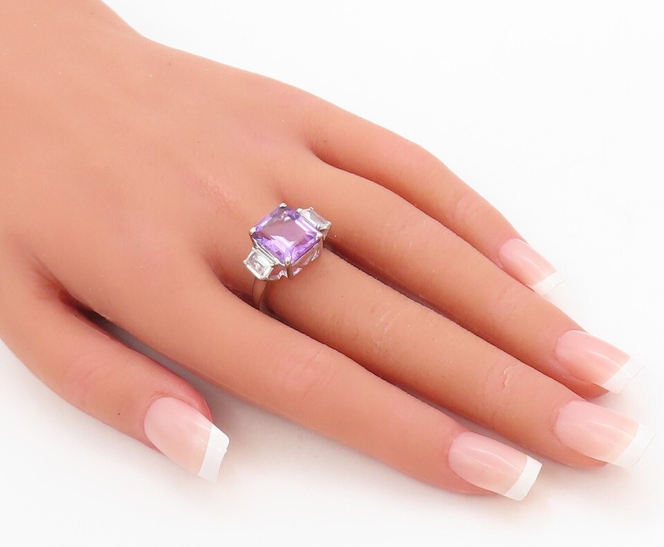 925 Sterling Silver Vintage Ring Rectangle Cut Amethyst & CZ Sz 7 RG30555