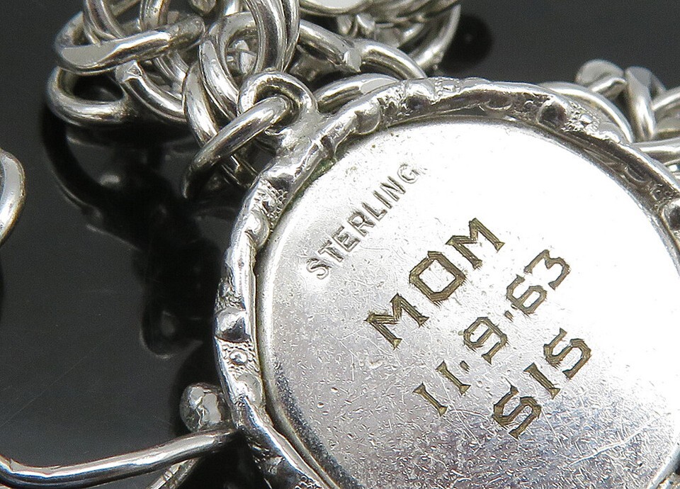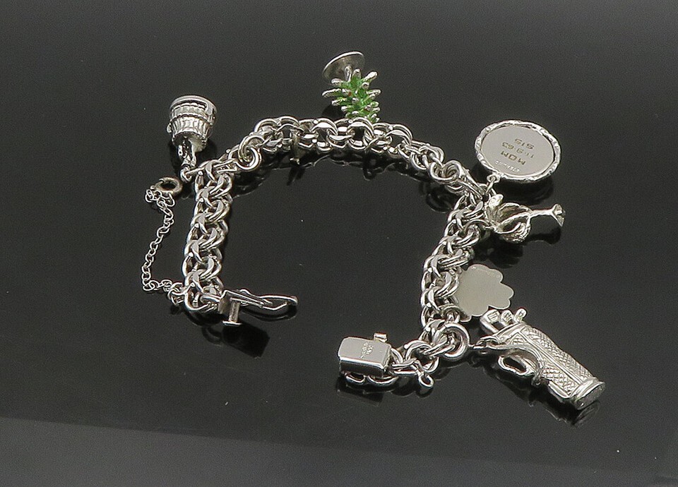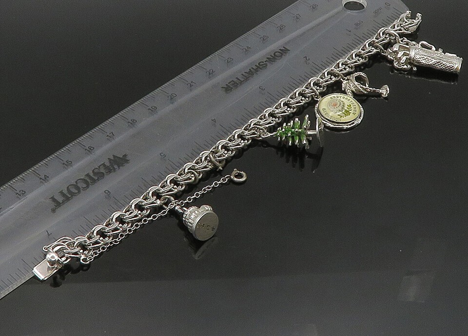 925 Sterling Silver Vintage Assorted Charms Round Link Chain Bracelet BT9116