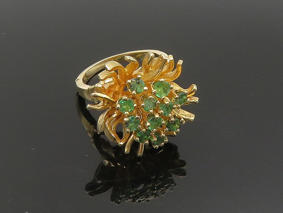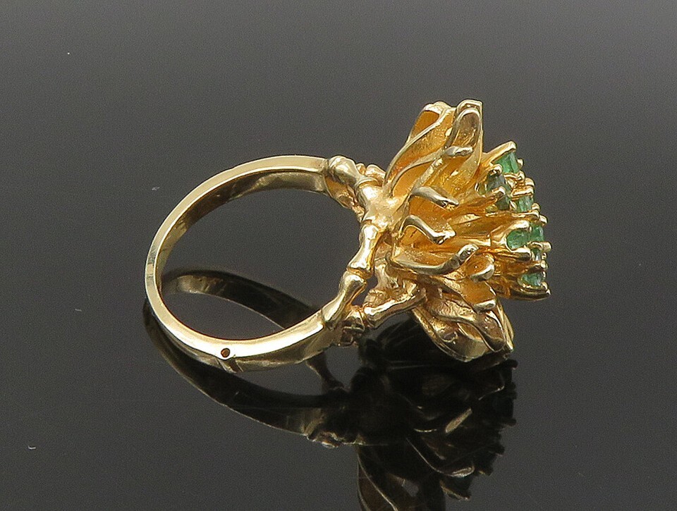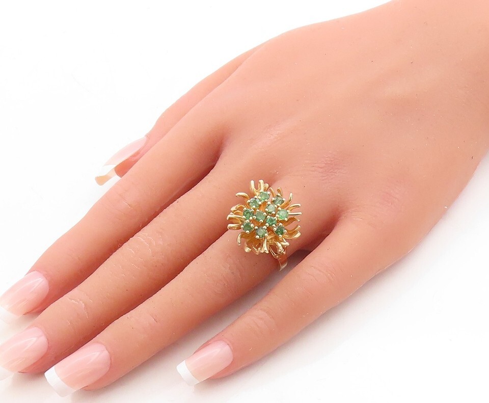 Authenticity Guarantee 14K GOLD Vintage Brutalist Green Gemstone Cluster Fl...