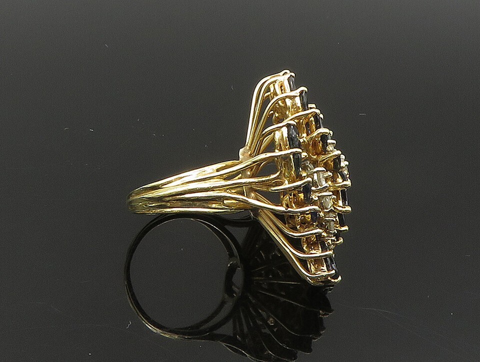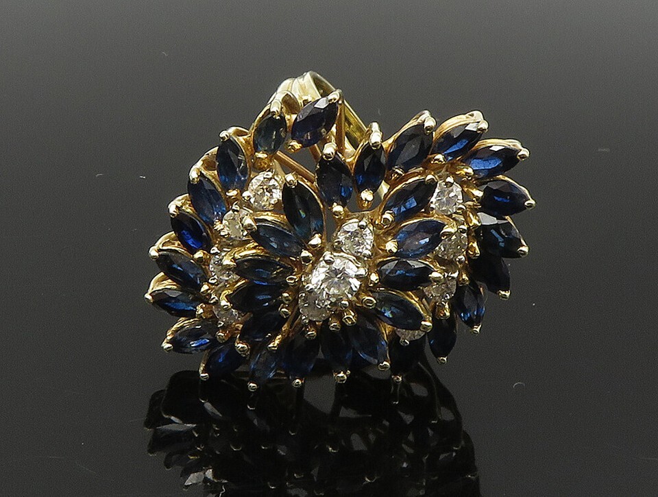Authenticity Guarantee 14K GOLD Vintage Genuine Diamonds & Sapphire Swirl S...