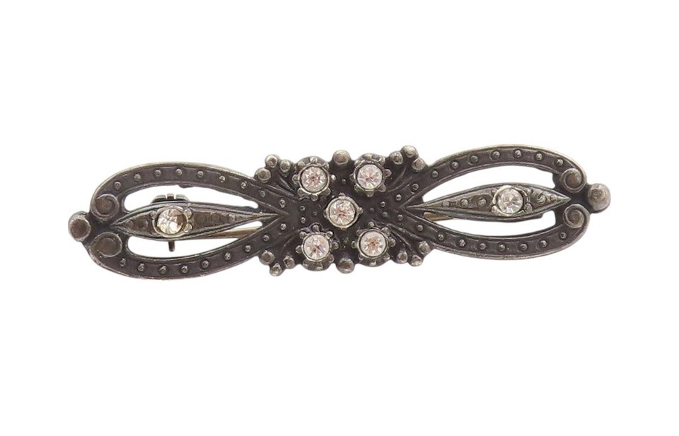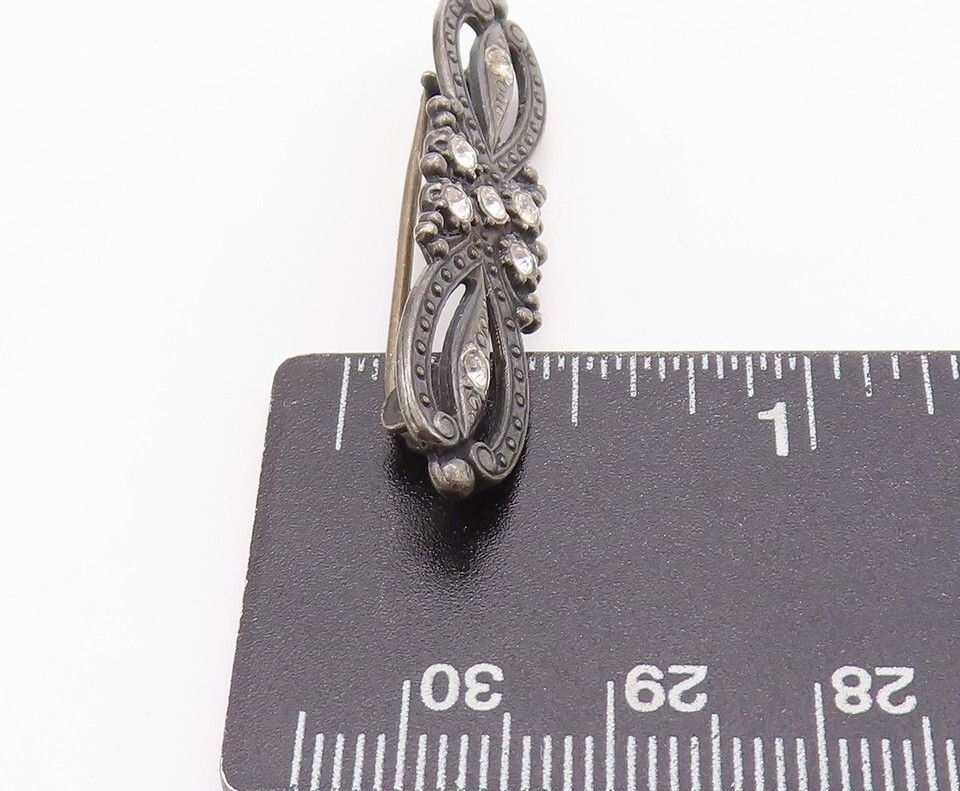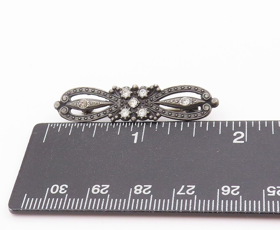 925 Sterling Silver Vintage Brooch Victorian Design CZ Inlay Cutout BP11623