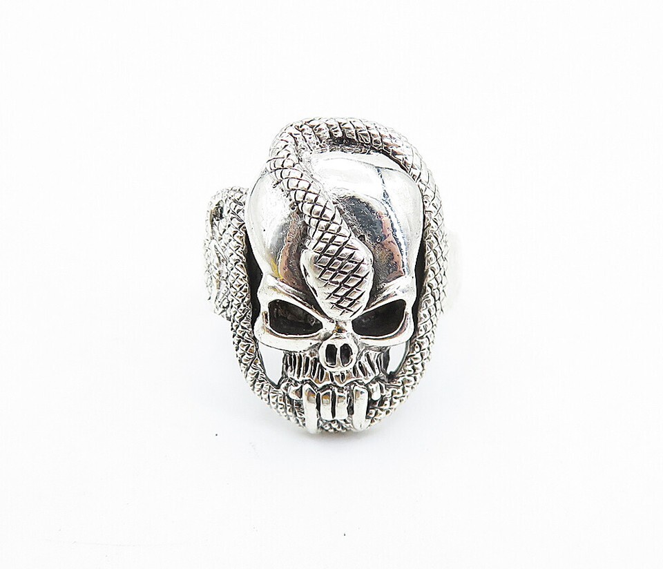 925 Sterling Silver Vintage Shiny Snake & Skull Head Band Ring Sz 12.5 RG7430