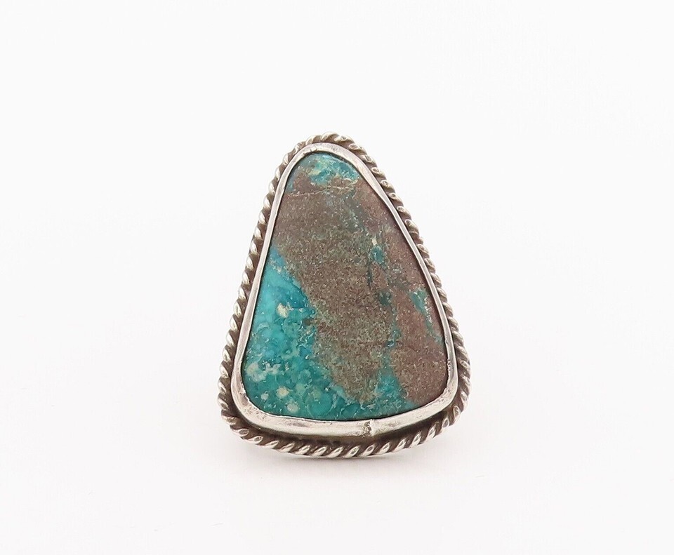 925 Sterling Silver Vintage Ring NAVAJO Rope Carved Turquoise Sz 11 RG28435