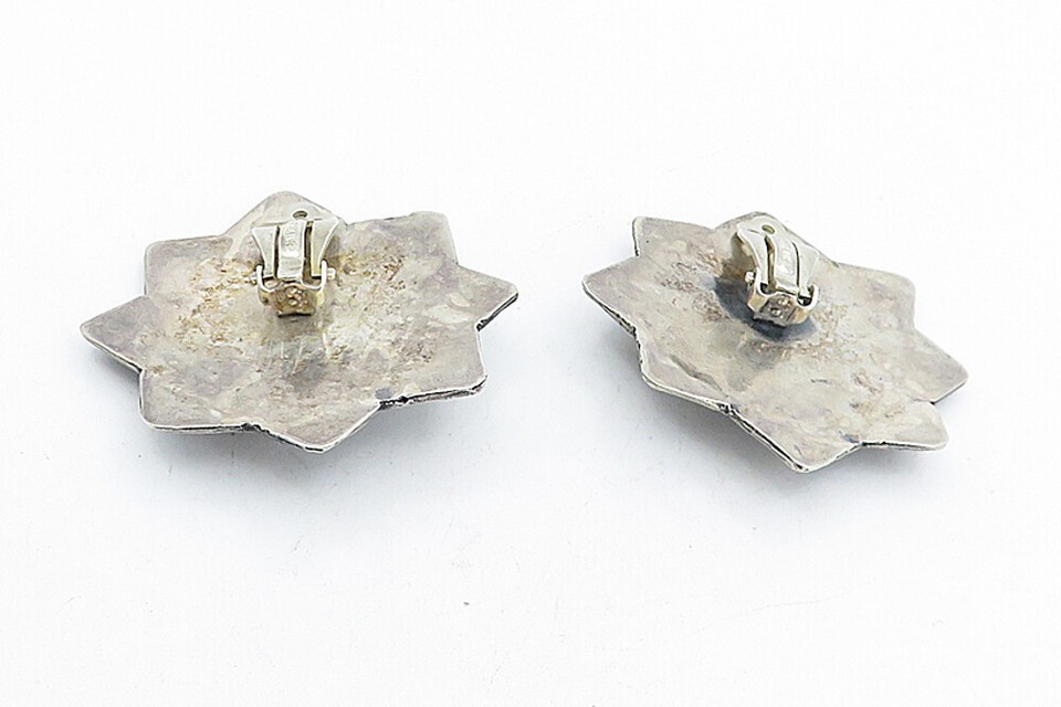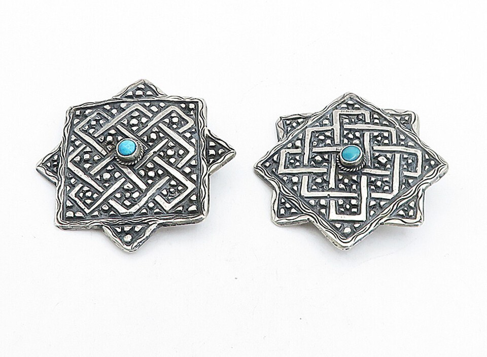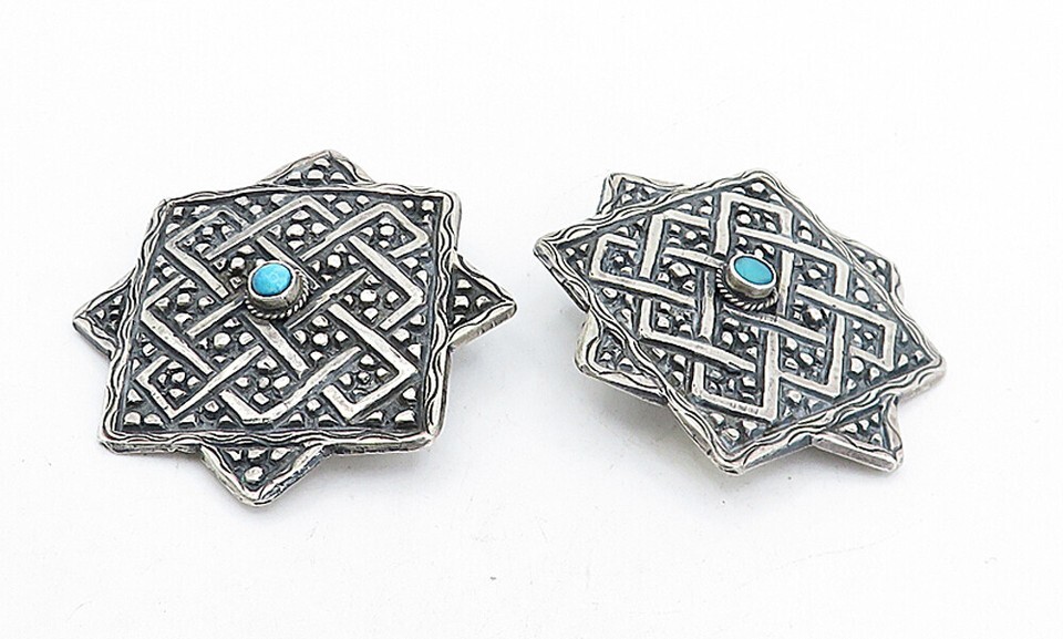 SOUTHWESTERN 925 Silver Vintage Turquoise Oxidized Non Pierce Earrings EG2377