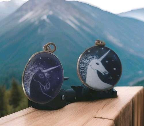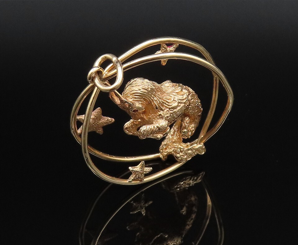 Authenticity Guarantee 14K GOLD Vintage Roaring Unicorn & Stars Open Frame ...