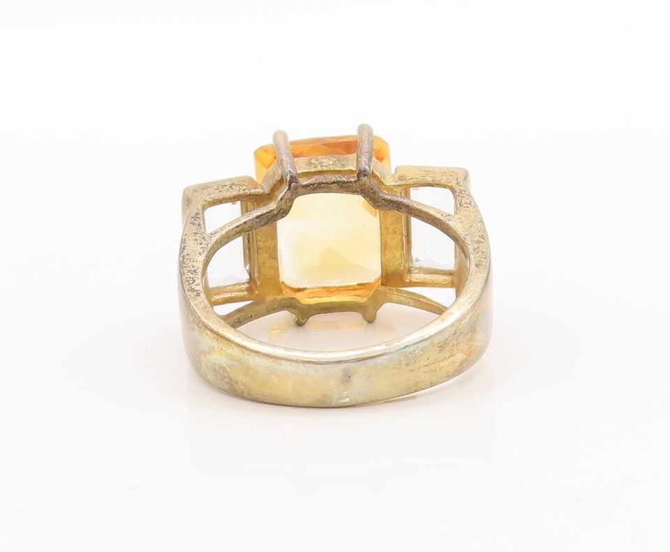 925 Sterling Silver Vintage Ring Gold Plated Rectangle Citrine CZ Sz 7 RG29475