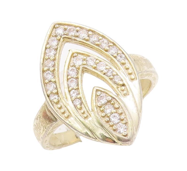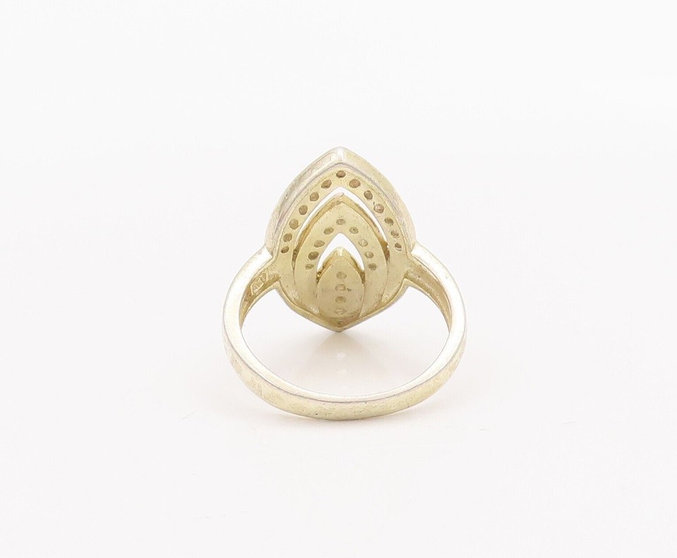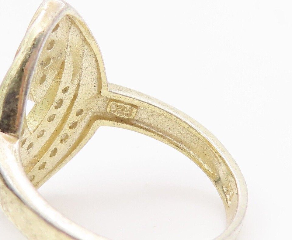 925 Sterling Silver Vintage Ring Cutout Leaf Tip Shape CZ Bands Sz 7.5 RG28413