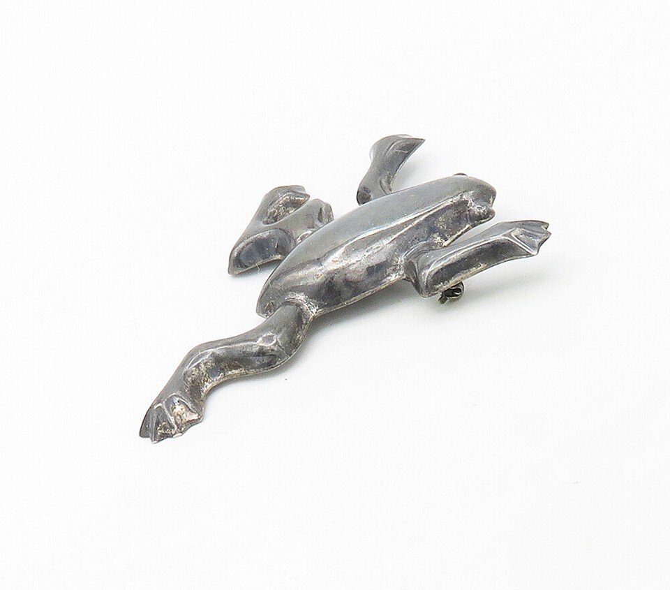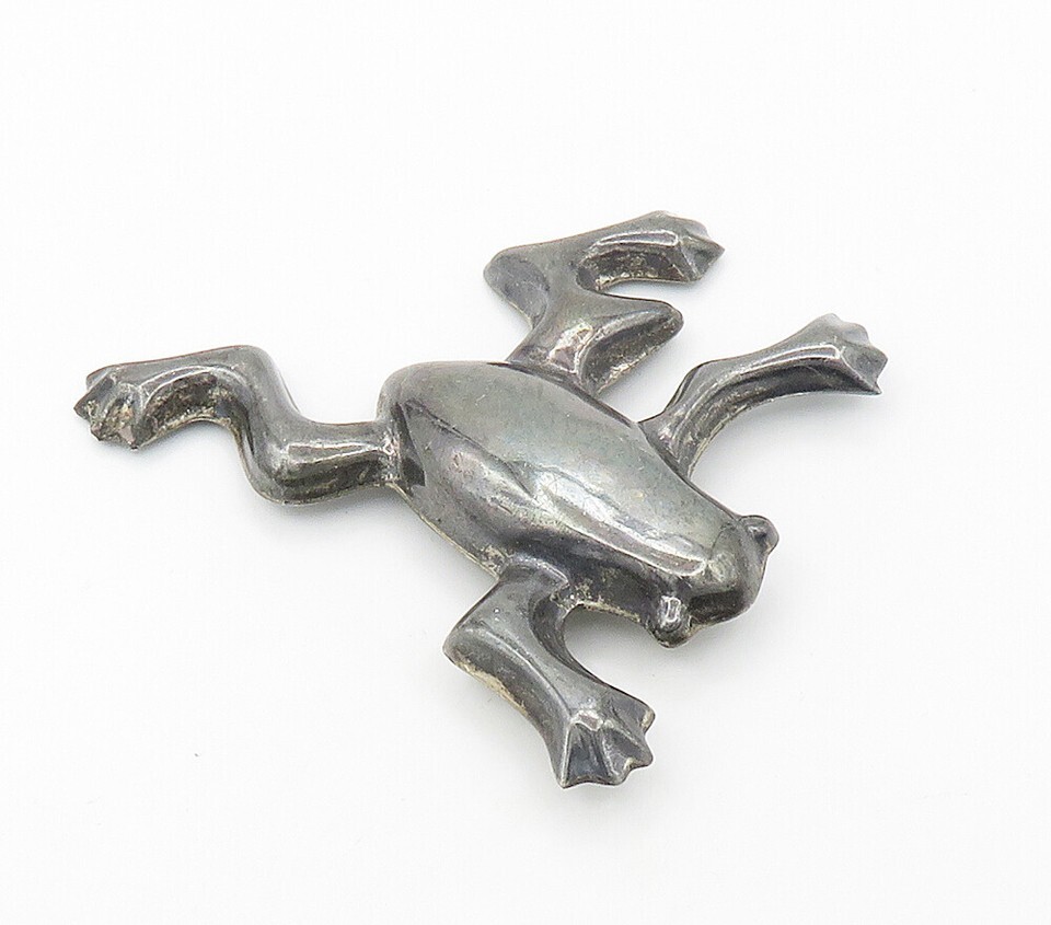 925 Sterling Silver Vintage Dark Tone Smooth Hollow Frog Brooch Pin BP6560