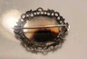 EUROPEAN 925 Silver Vintage Blue Agate & Swirl Border Brooch Pin BP10024