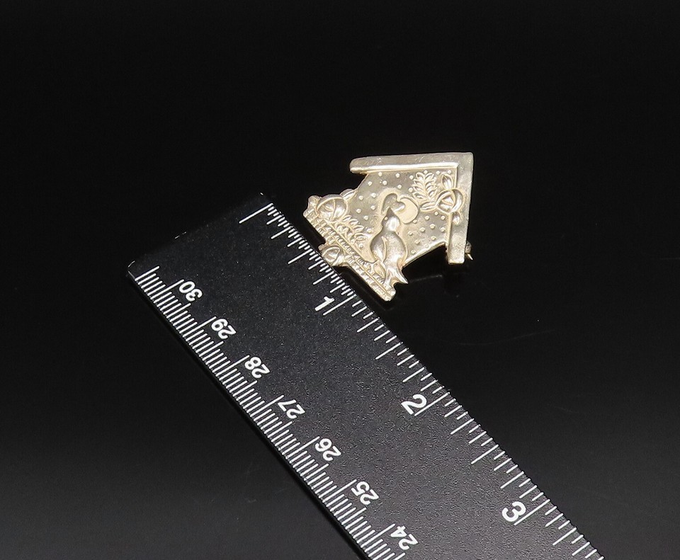 MARY ENGELBREIT 925 Silver Vintage Etched Birdhouse Brooch Pin BP10015