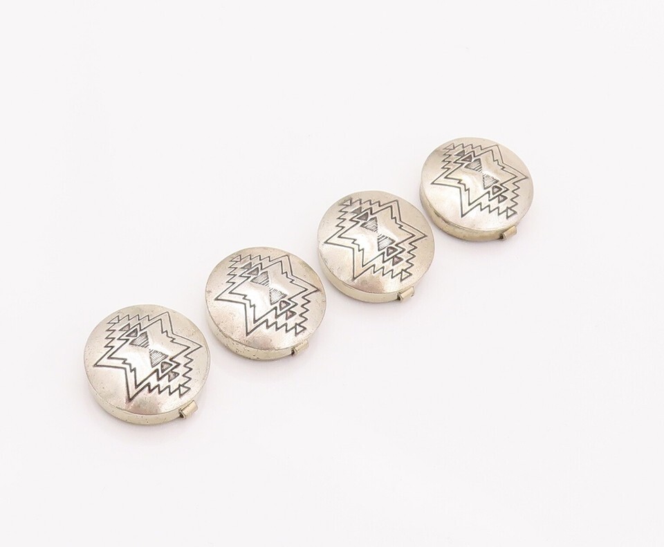 925 Sterling Silver Vintage Button Cover NAVAJO Etched Southwestern TR3725