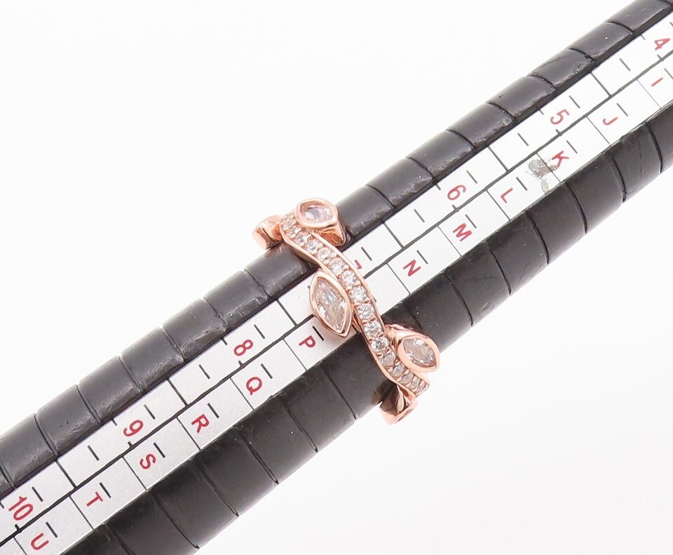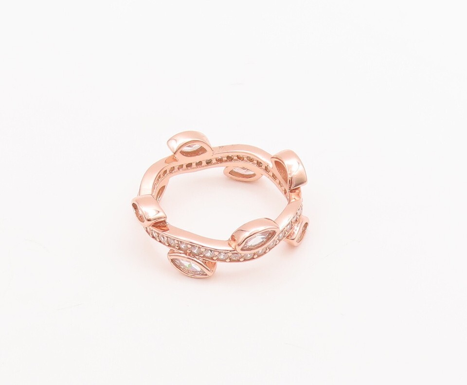 925 Sterling Silver Vintage Ring Rose Gold Plated Carved CZ Tiara Sz 7 RG29633