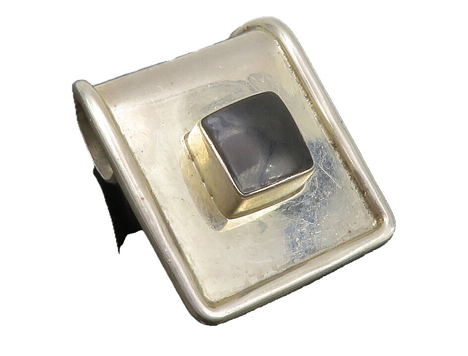 MEXICO 925 Sterling Silver Vintage Black Onyx Square Slide Pendant PT10030