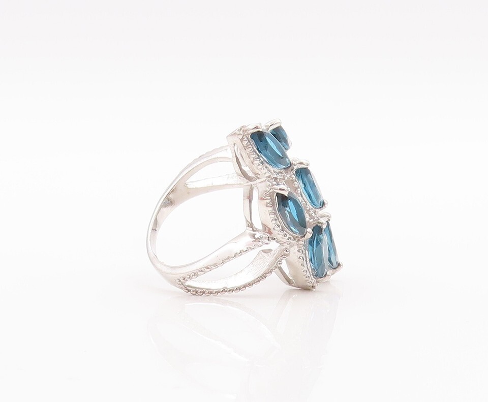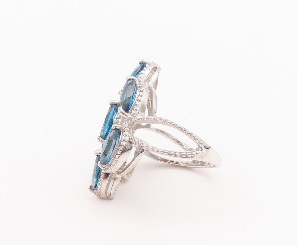 925 Sterling Silver Vintage Ring Marquise Cut Blue London Topaz Sz 7.5 RG29620