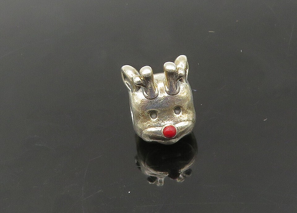 PANDORA 925 Silver Vintage Coral Rudolph Red Nose Reindeer Pendant PT17565