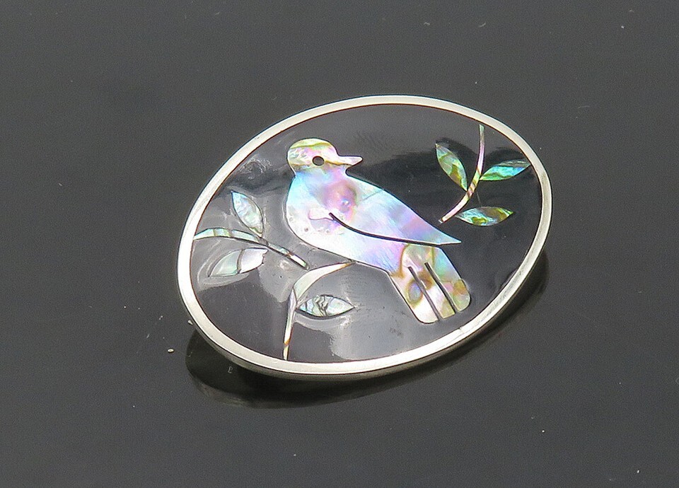 CII MEXICO 925 Silver Vintage Abalone & Black Onyx Bird Brooch Pin BP8265
