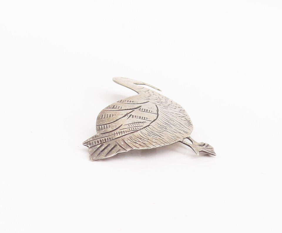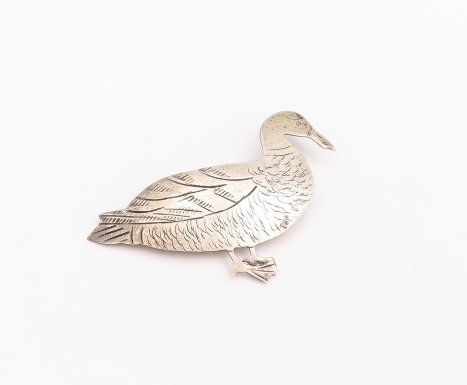 925 Sterling Silver Vintage Brooch Pin Minimalist Carved Walking Duck BP10943