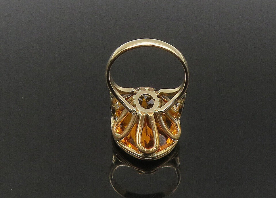 Authenticity Guarantee 9K GOLD Vintage Ring 1/4 Carat Diamonds & Large Gemst...