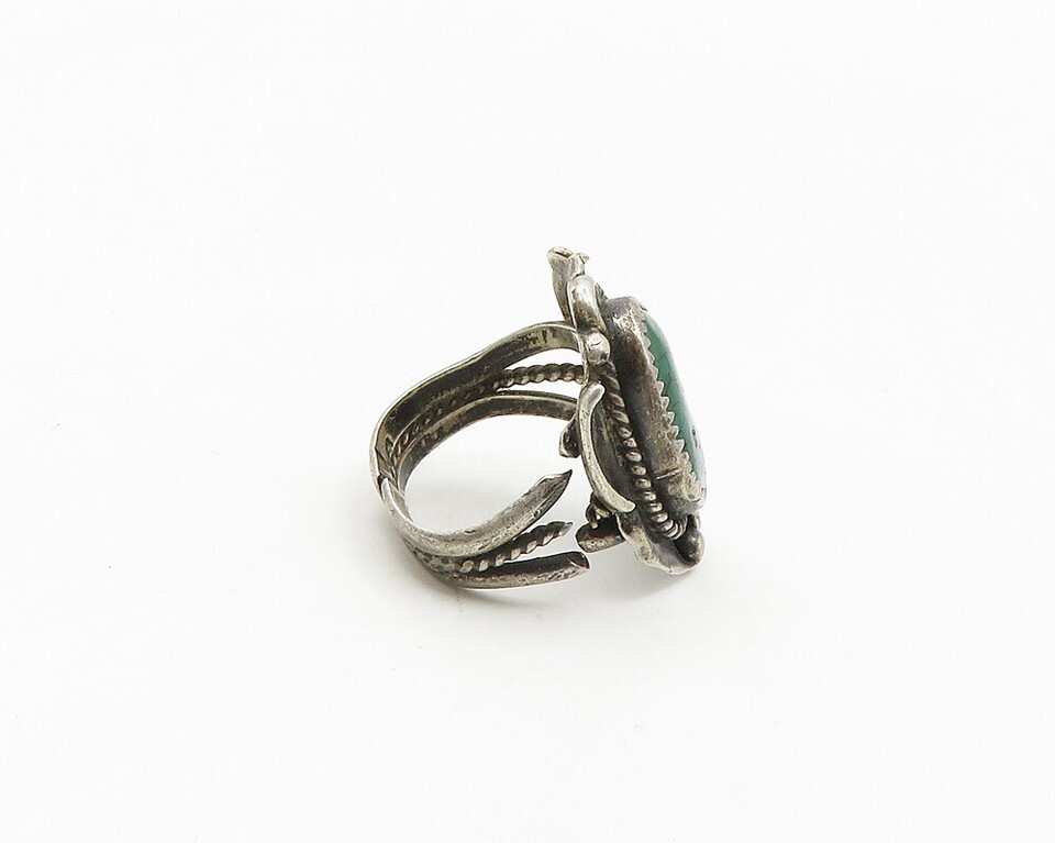 NAVAJO 925 Silver Vintage Turquoise Feather Cocktail Ring Sz 6 RG18716