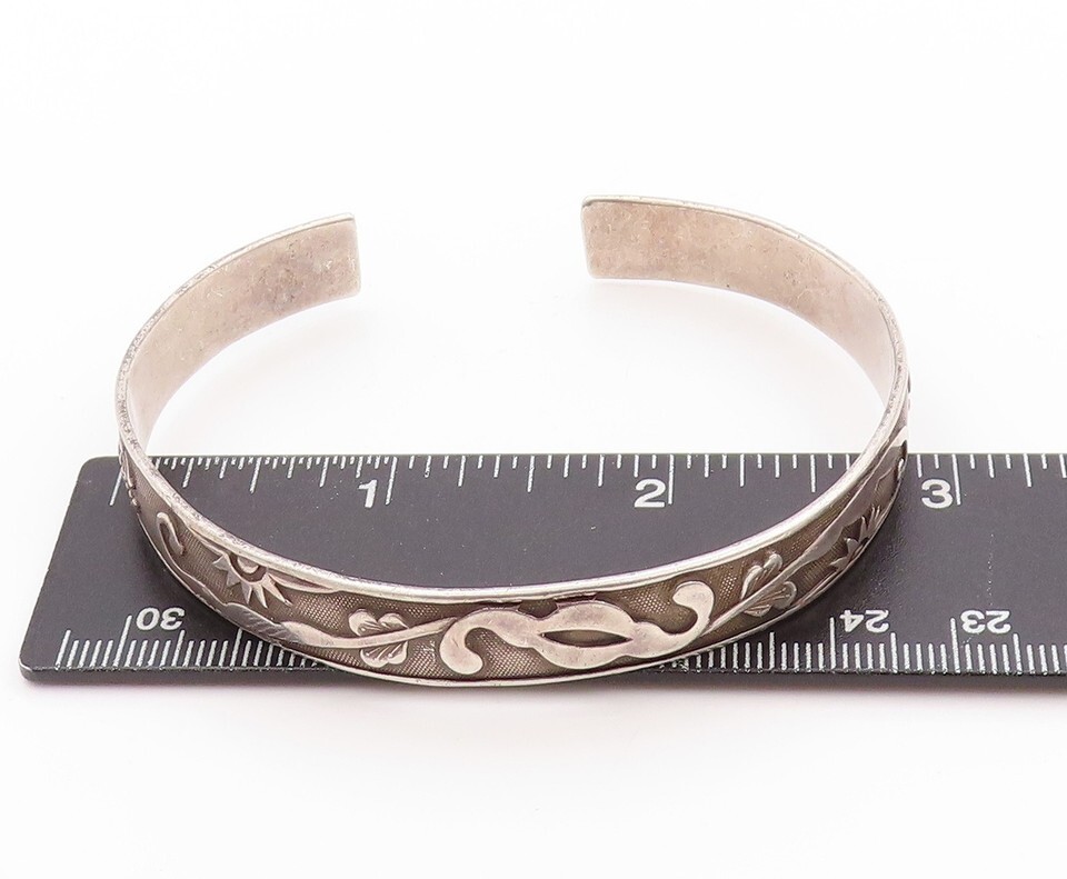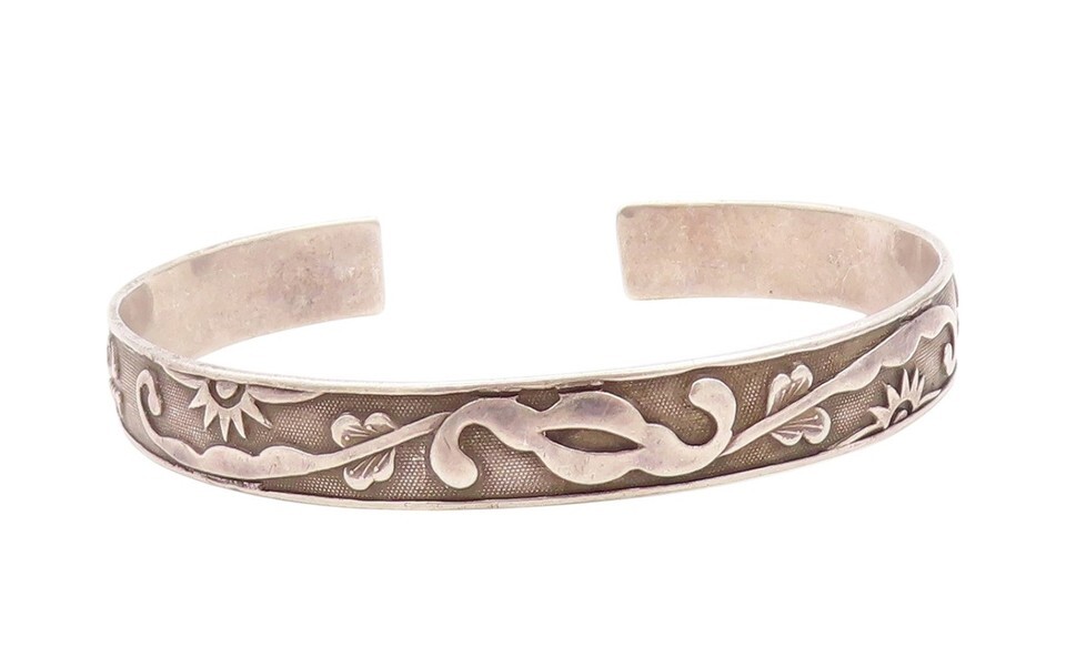 925 Sterling Silver Vintage Bracelet CHINESE EXPORT Antique Floral Cuff BT11188