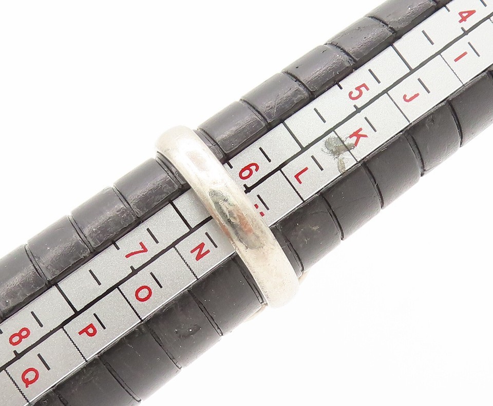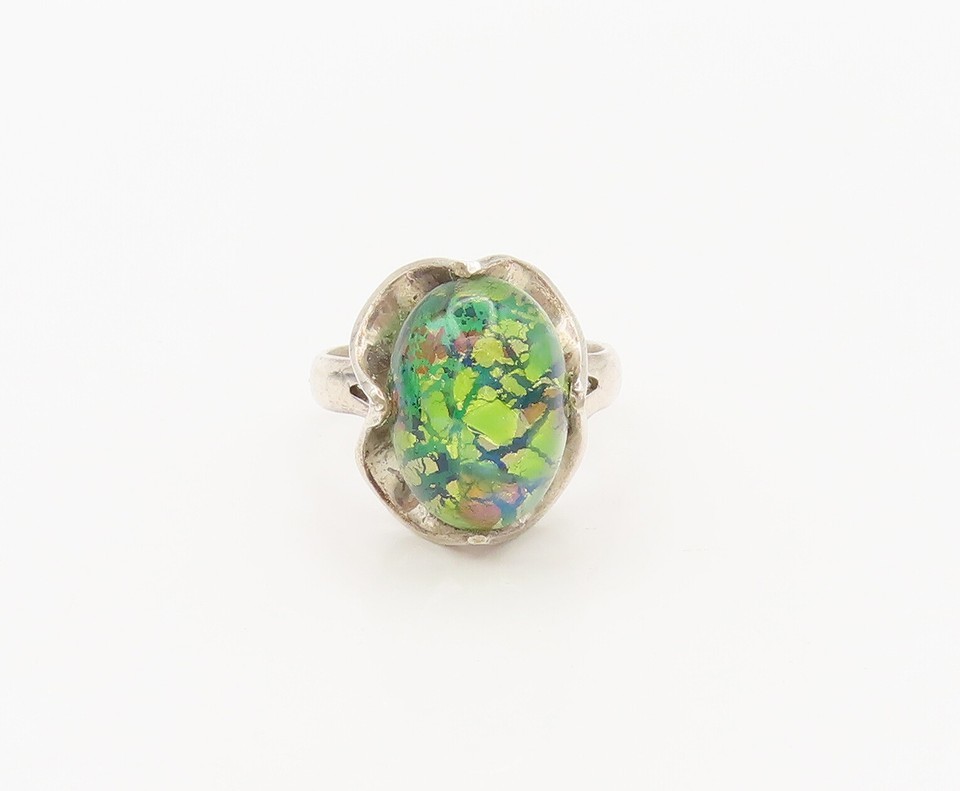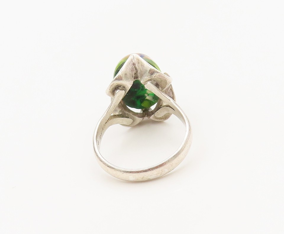 925 Sterling Silver Vintage Glass Stone Swirly Cut Neck Ring Sz 6.5 RG27371