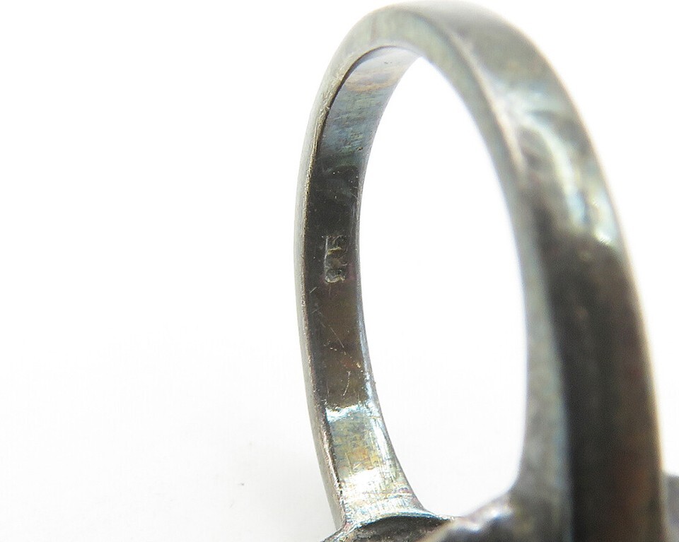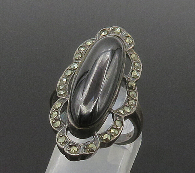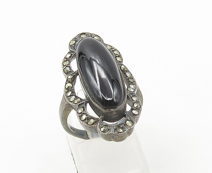 925 Silver Vintage Victorian Onyx & Marcasite Cocktail Ring Sz 6 RG17081
