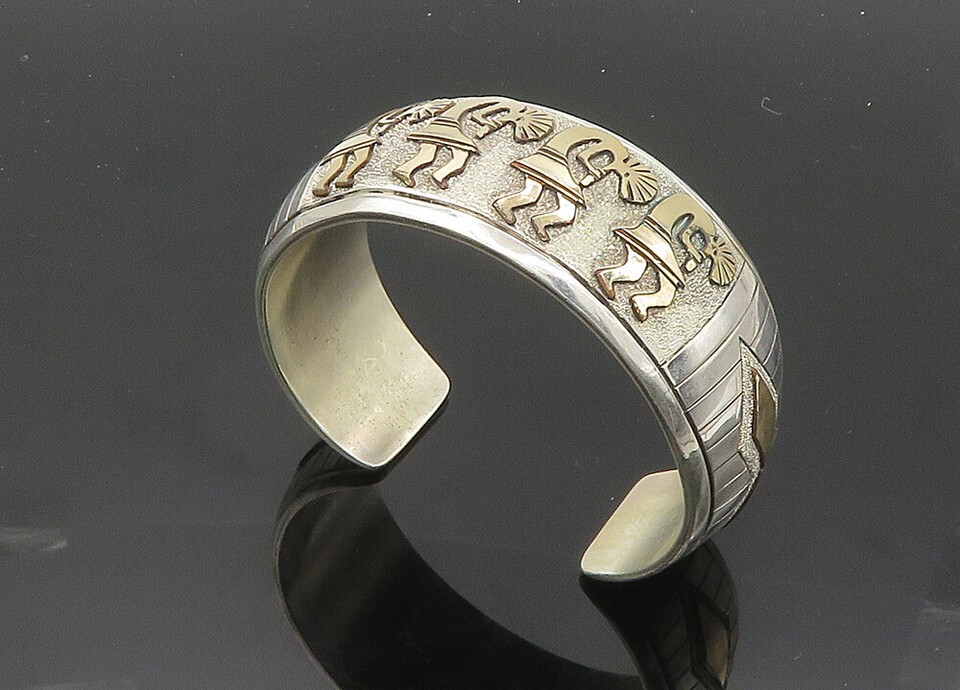 MARK YAZZIE NAVAJO 925 Silver & 12K GOLD Vintage Kokopelli Bracelet BT8215