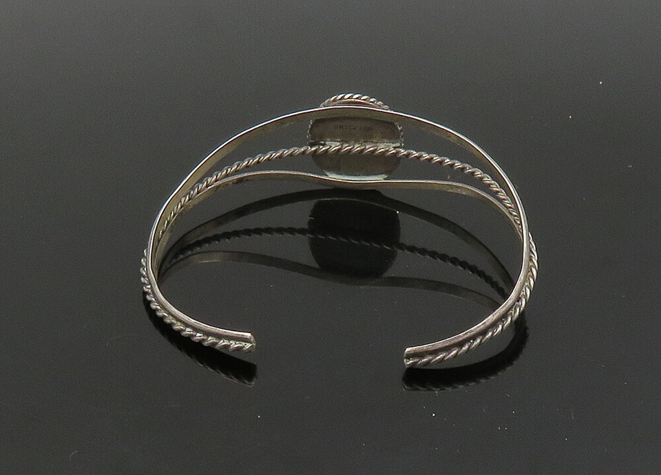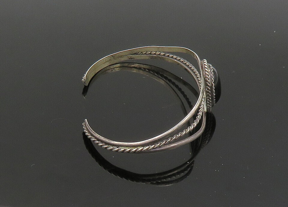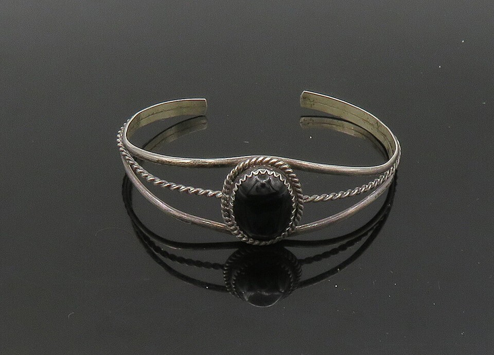 NAKAI NAVAJO 925 Silver Vintage Cabochon Black Onyx Cuff Bracelet BT8944