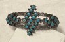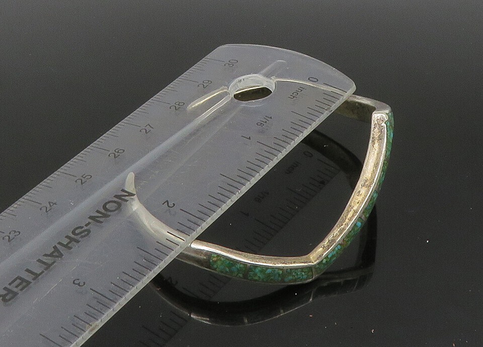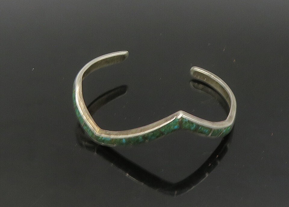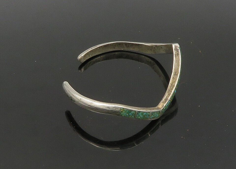 ZUNI NAVAJO 925 Silver Vintage Inlaid Turquoise Pointed Cuff Bracelet BT8941
