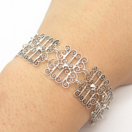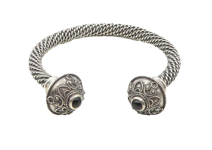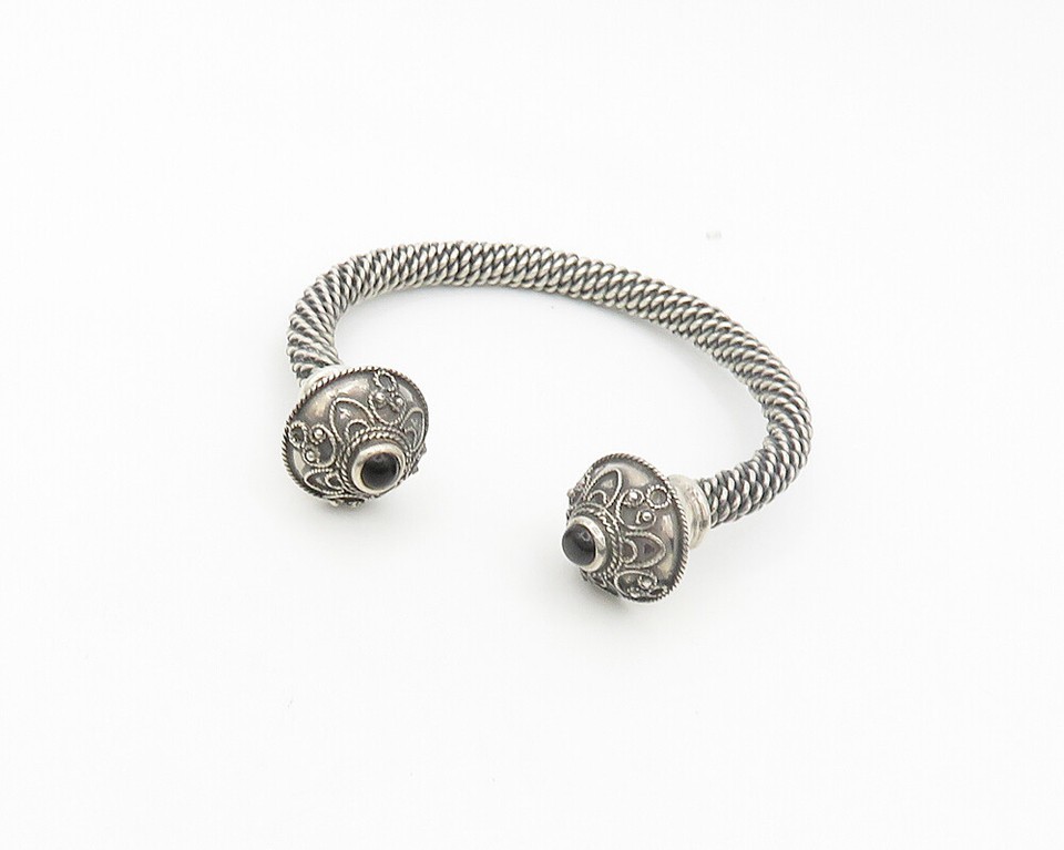 925 Sterling Silver Vintage Black Onyx Swirl Ends Twist Cuff Bracelet BT7578