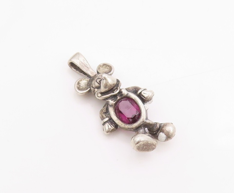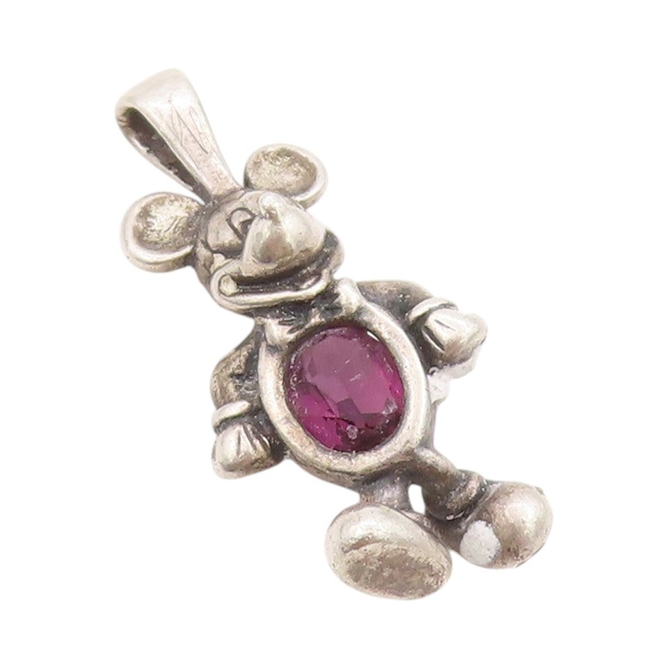 925 Sterling Silver Vintage Pendant DISNEY Amethyst Micky Mouse Charm PT24495